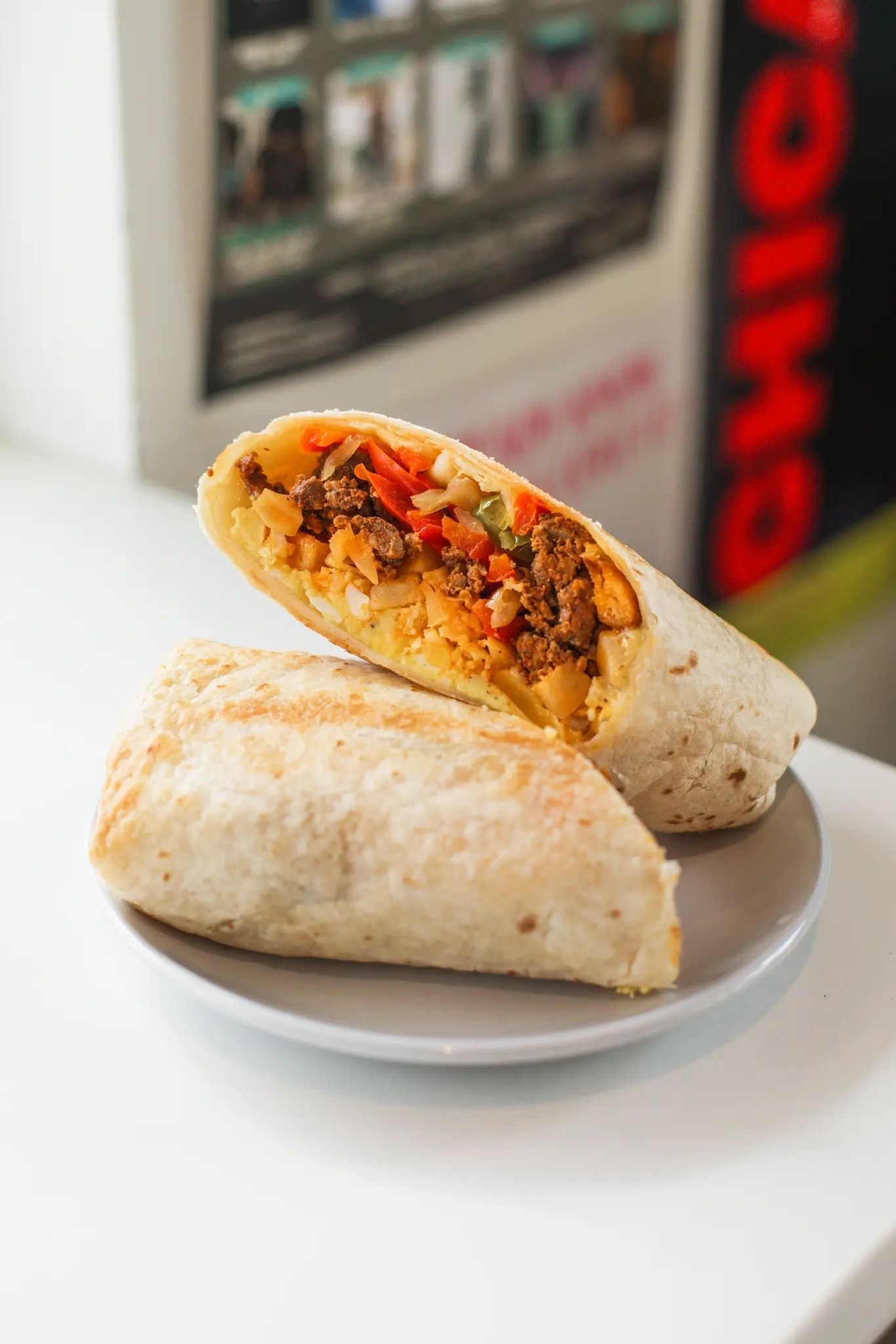 black beans, hashbrown potatoes, aged white cheddar, bell peppers, white onions, scrambled eggs
