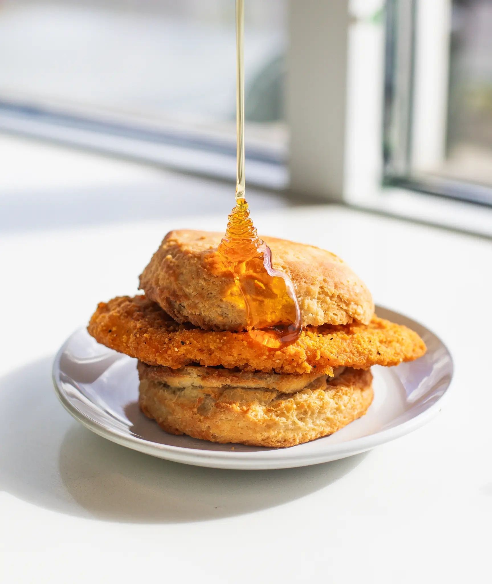 KLD farms sausage, fried egg, aged white cheddar, house made buttermilk biscuit